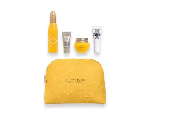 Kit LOccitane Contiene 5 Unidades. LOccitane Crema de Ducha Hidratante Karité Confort 75 mL + LOccitane Suero Facial Harmonie Divina 5 mL + LOccitane Crema Hidratante Divina 8 mL + LOccitane Bálsamo Para Labios Karité 4 g + LOccitane Bolsito Amarillo.