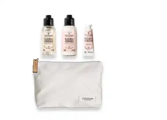 Este kit contiene: Gel de Ducha Fleurs de Cerisier (Antes Flor de Cerezo)75ml, Leche Corporal Shimmering Fleurs de Cerisier (Antes Flor de Cerezo) 75ml, Crema para Manos Fleurs de Cerisier (Antes Flor de Cerezo) 10ml, Bolsito Blanco L’Occitane.