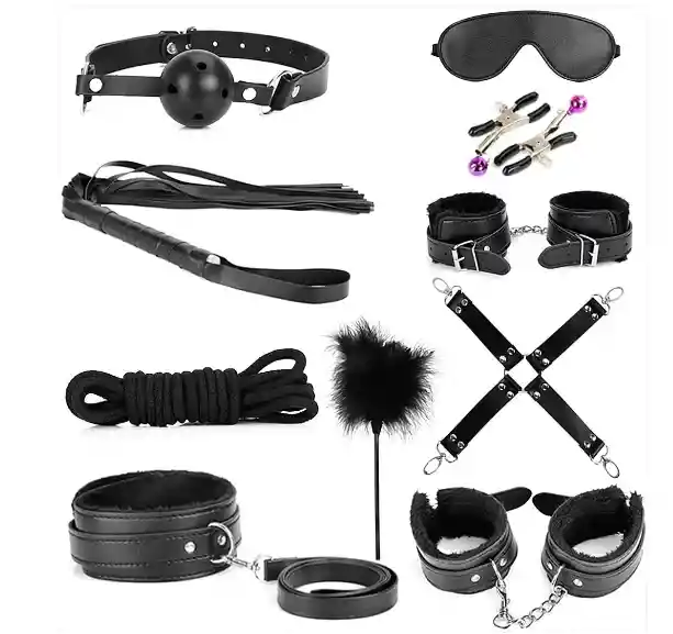 Todos nuestros productos van totalmente discretos y anónimos. Embalados en caja o bolsa de seguridad sellada y sin transparencia. ADVERTENCIA: La caja en que va este producto menciona 10 piezas, sin embargo, en esta publicación usted adquiere el juego de 8 piezas. Características: Juega en pareja con este creativo kit sadomasoquista. Incluye: 1 Látigo de cuero sintético 1 Paleta de cuero para aporrear 2 esposas 1 collar sado 1 Cuerda de collar sado 1 Tapa ojos 2 Pezoneras para apretar tetillas o pezón. i1