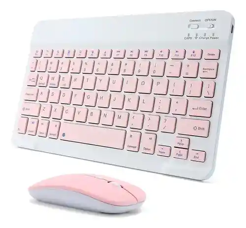 Nota: El teclado viene recargable, el mouse según disponibilidad viene recargable o de 2 pilas triple A (N0 INCLUIDAS). Distancia de operación efectiva: dentro de 10 m Sistema de modulación GFSK Tiempo de trabajo ininterrumpido: 150 H (sin retroiluminación/3 H/. Voltaje de funcionamiento: 3-5 V 4. Duración de la batería de litio: 2-3 años Tiempo de carga: 2-3 hs 10. Capacidad de la batería de litio: 150 mA/420 mA Tecla de encendido: deslice el interruptor hacia ON o OFF para encender o apagar el dispositivo. Tecla de conexión: con la tecla de encendido encendida, presione la tecla de conexión para que el teclado comience a prepararse FN+ Android Convertir Android FN-win Convertir para conexión Bluetooth. Tres niveles de brillo 2.Indicador Indicador de encendido, que permanece encendido durante 4 segundos cuando se enciende la tecla de encendido y luego se apaga. Indicador de conexión Bluetooth, que parpadea cuando se presiona la tecla de conexión y se apaga cuando el El teclado está conectado a su dispositivo. Indicador de bloqueo de mayúsculas, que está encendido cuando el teclado está conectado a su dispositivo. Indicador de bloqueo de mayúsculas, que se enciende cuando se utiliza el cable USB para cargar el teclado.