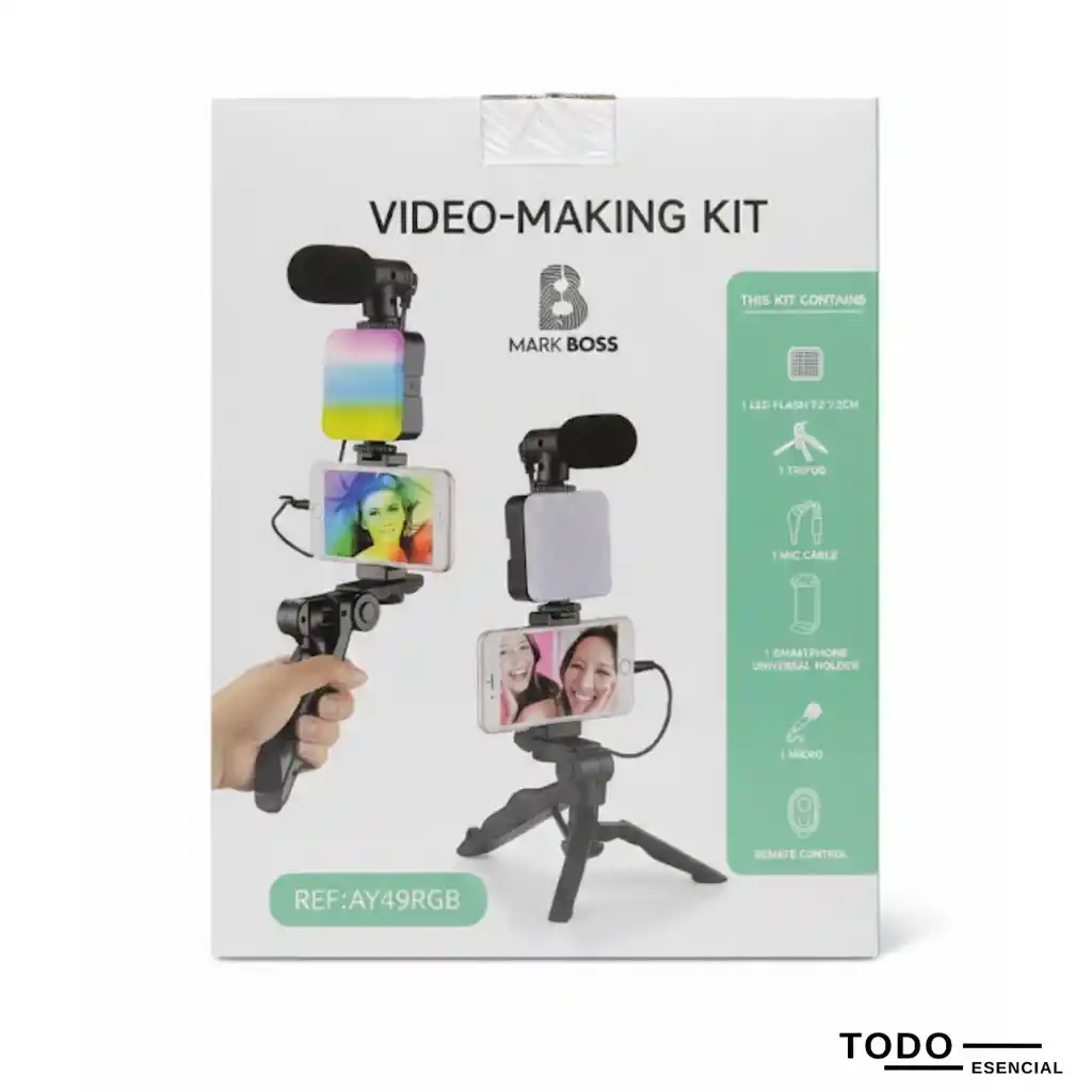 "Kit de Video-Making Pro 4 en 1 – Iluminación RGB y Micrófono Profesional ⚡📸 Simplifica tu día a día con el Kit de Video-Making ""Mark Boss"", diseñado para ofrecer máxima calidad y rendimiento en un solo accesorio. Gracias a su diseño multifuncional, combina todos los elementos esenciales para grabar videos impresionantes, sin necesidad de llevar varios accesorios por separado. Su estructura resistente proporciona mayor durabilidad, es fácil de transportar y soporta el uso continuo. Además, su capacidad de iluminación versátil y audio claro garantizan una producción de contenido profesional y atractiva para redes sociales, clases online o transmisiones en vivo. ✨ Diseño multifuncional 4 en 1: 🔹 Panel LED RGB: Iluminación versátil para cualquier ambiente. 🔹 Micrófono Profesional: Audio nítido, claro y sin ruidos. 🔹 Trípode 2 en 1: Estabilidad de mesa o mango portátil. 🔹 Soporte Universal: Compatible con todos los smartphones. ✨ Características principales: ⚡ Luz LED RGB ajustable: Potencia y efectos de color para tu contenido. 🔄 Compatibilidad universal: Ideal para iPhone, Android y cámaras compactas. 🧵 Construcción robusta: Mayor resistencia y larga vida útil. 🎒 Todo en un solo kit: Reduce espacio y elimina accesorios adicionales. 🔌 Conexión fácil: Sistema Plug & Play para empezar a crear al instante. 👌 Diseño práctico y portátil: Ideal para casa, exteriores o viajes. ✅ El kit perfecto para quienes buscan calidad profesional, versatilidad y durabilidad, con una sola solución para todos sus proyectos de video."