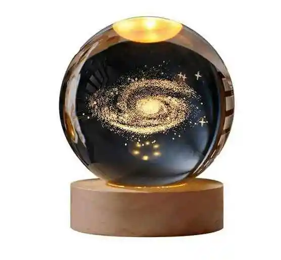 Esta exquisita esfera de cristal sobre una base de madera combina la belleza natural con la funcionalidad moderna. La esfera de cristal transparente agrega un toque de elegancia a cualquier espacio, mientras que la base de madera proporciona un soporte estable y rústico. Lo más impresionante es la luz blanca suave que emana de esta lámpara, creando una atmósfera acogedora y relajante en tu hogar u oficina. La iluminación LED de esta lámpara es perfecta para crear un ambiente cálido y acogedor.