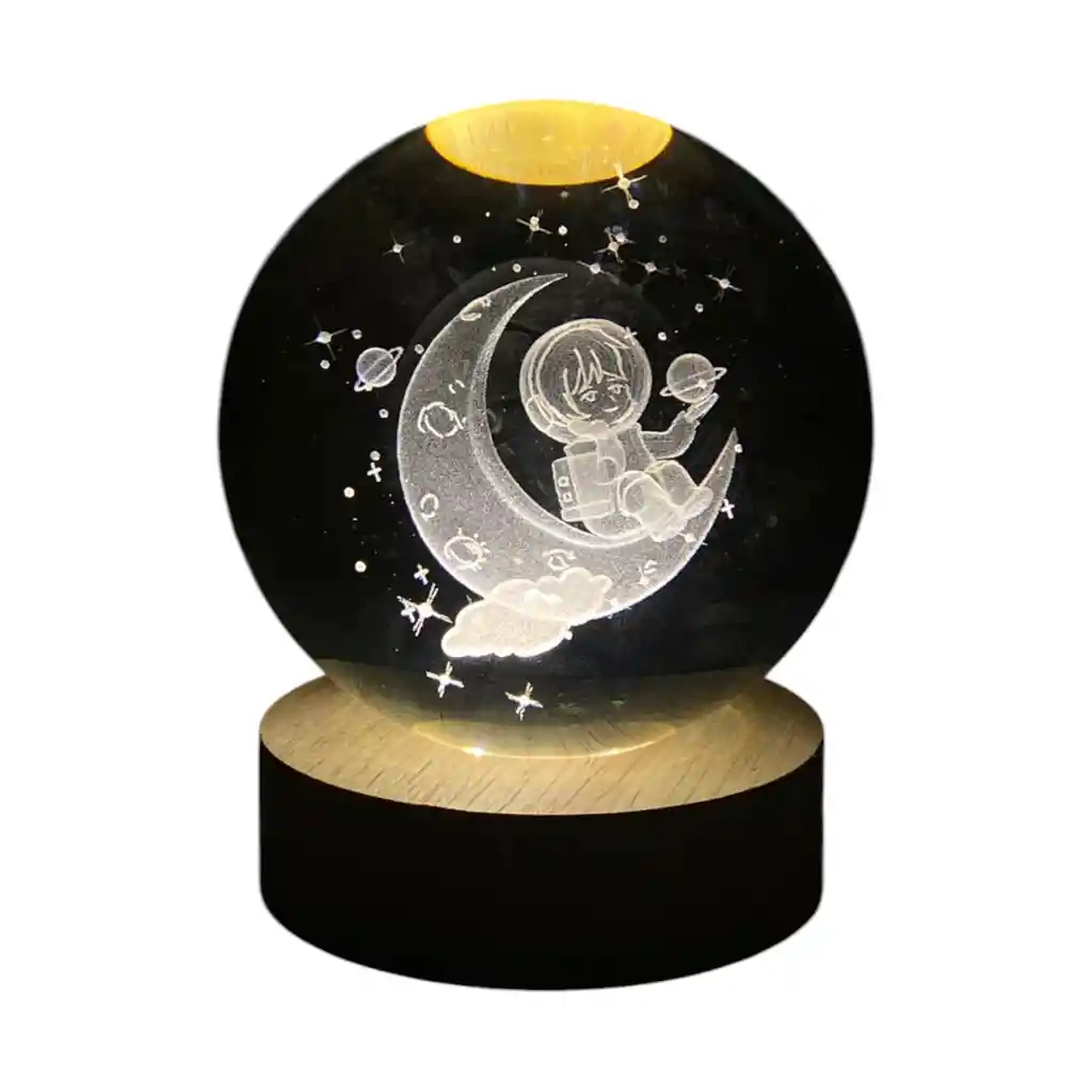 Lampara Esfera 3d Cristal Niño Luna + Base De 8cm
