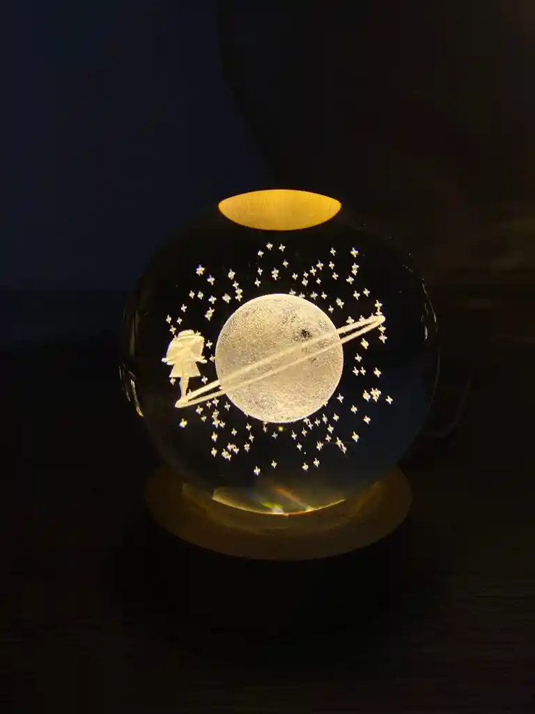 *****BIENVENIDOS A TONATEK**** Esta compra incluye: * 1 Lampara Esfera 3d Cristal * 1 Base Dimensione: 8cm diametro La lámpara esfera está hecha de cristal de alta calidad, seguro e inofensivo para el cuerpo humano. La luz nocturna es suave, uniforme y no parpadea.