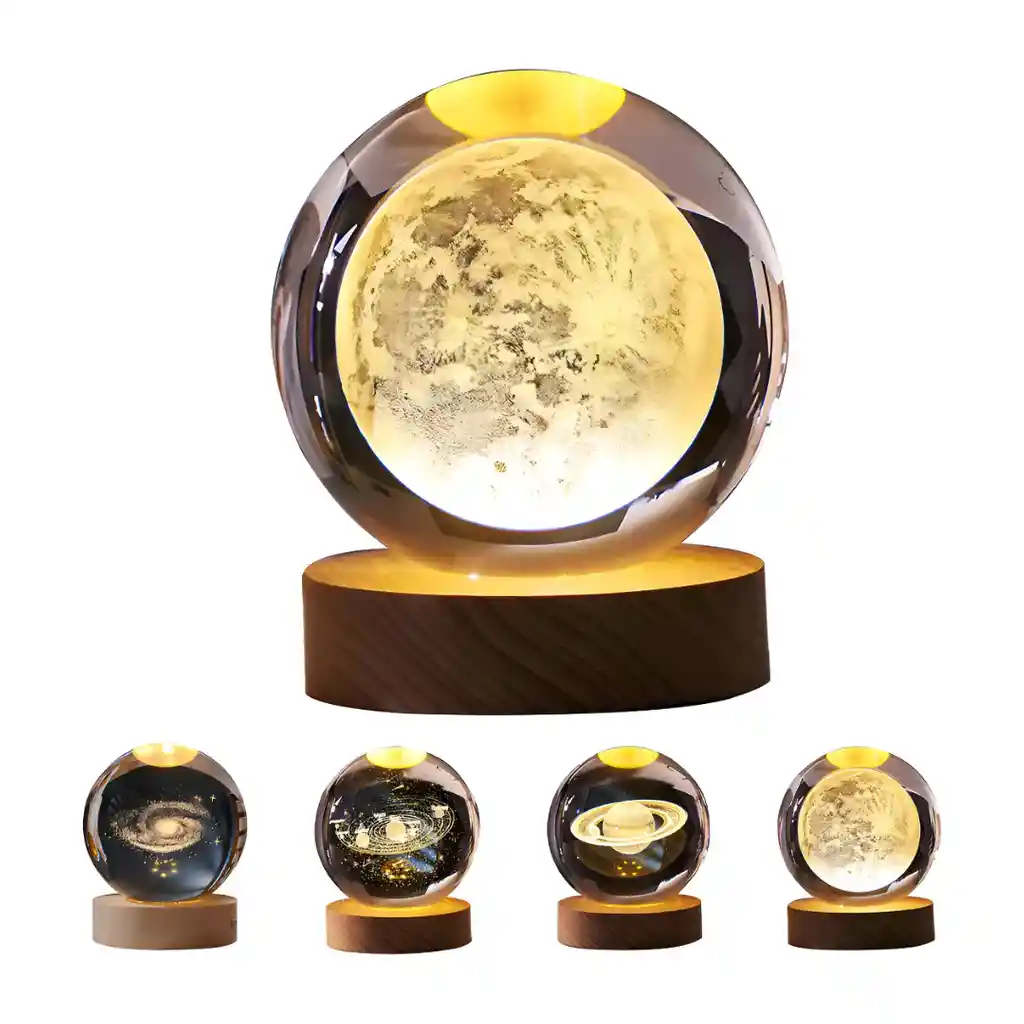 La bola de cristal no está adulterada y es muy duradera. La base de madera natural es muy duradera y no se pudre, enmohece ni agrieta, lo que le permite conservar su belleza durante mucho tiempo. Decoración nocturna para el hogar: la bola transparente tiene un delicado y claro dibujo en 3D grabado en el interior, que crea un ambiente cálido y de ensueño cuando se ilumina con una luz suave, dando a su hogar un toque romántico y artístico. Es a la vez una luz nocturna y una bonita decoración. Adecuada para dormitorios, salones, habitaciones infantiles, salas de estudio, pasillos o cualquier estilo de espacio. Carga USB: Tamaño de la bola de cristal: 6 cm. Base de madera: 7 cm x 2 cm. Con un cable USB, esta luz nocturna de cristal se puede enchufar a la mayoría de baterías portátiles, ordenadores portátiles, enchufes domésticos, etc. Mantén el cable enchufado si necesitas encender la luz.