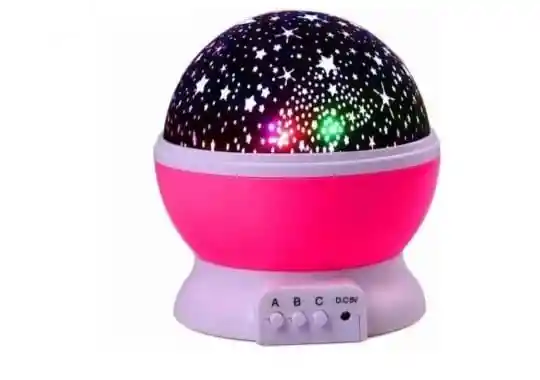 Luz de decoración para el hogar, dormitorio, habitaciones infantiles. Alimentación: 3 x pilas AA (No Incluidas) o cable USB. Tamaño del producto: 14 cm x 12.7 cm x 11.4 cm. Modos: Rotación/atenuación/luz nocturna No tiene música Contenido el paquete: 1 x Lampara - Proyector de Estrellas 1 x Cable USB