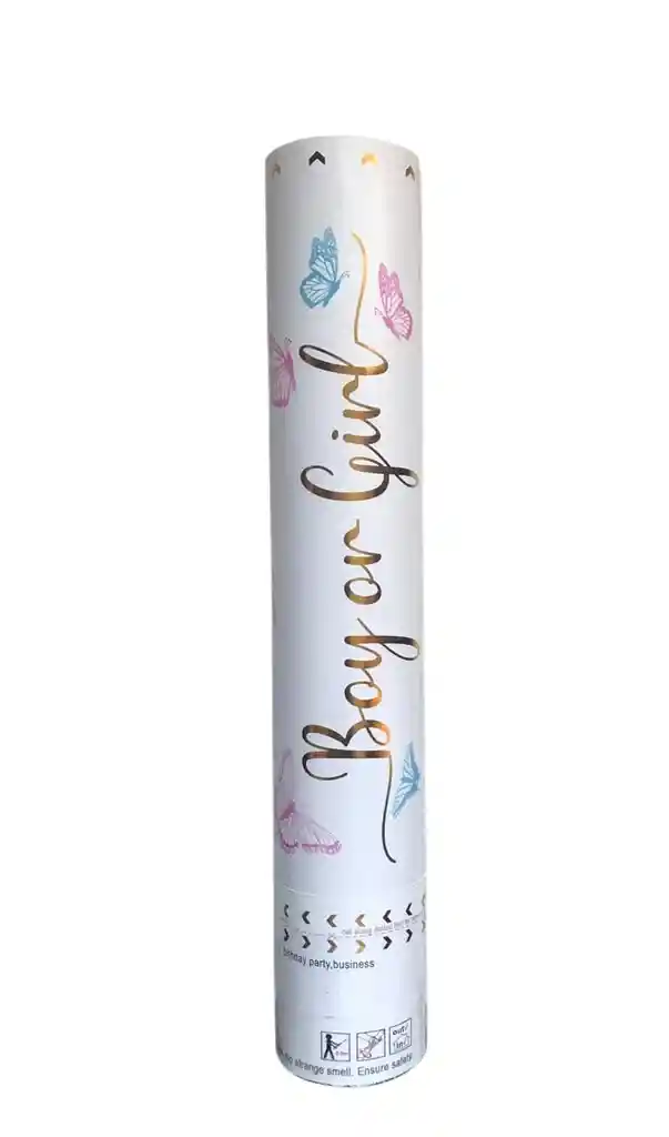 🎉 Tubo Lanza Confeti para fiesta de Revelación De Genero 🎨 Lanza el confeti de color Azul 📏 La medida del tubo lanza confeti es de 27 cm aproximadamente
