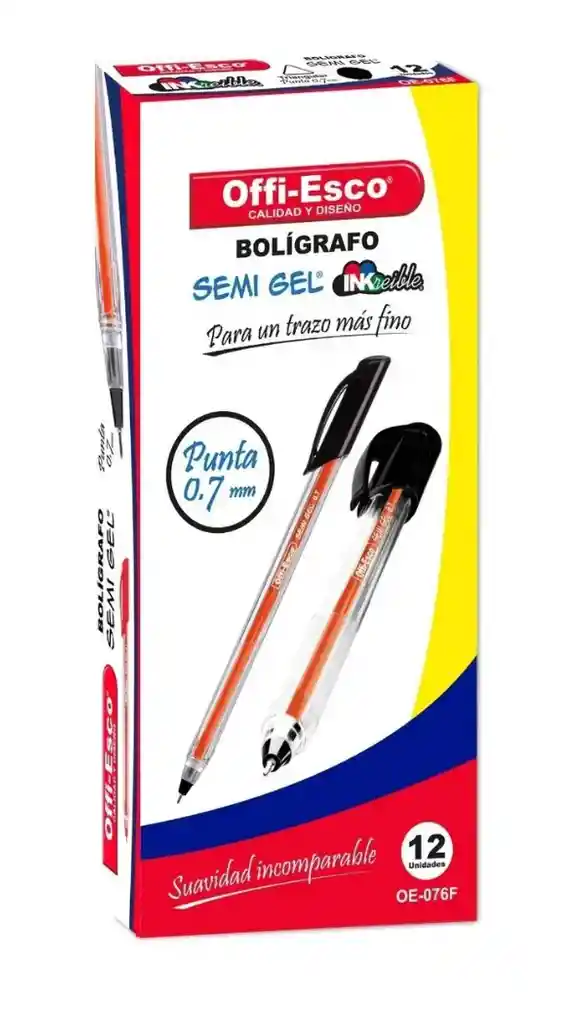 Punta de 0.7 mm para un trazo fino y preciso. Tinta semi gel de color negro para una escritura suave Viene por 12 unidades