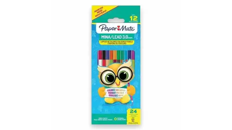 LÁPICES DE COLORES PAPER MATE REDONDOS, MINA 3.0 MM, PRESENTACIÓN DE 12 UNIDADES DOBLE PUNTA, COLORES VIVOS, IDEALES PARA USO ESCOLAR.