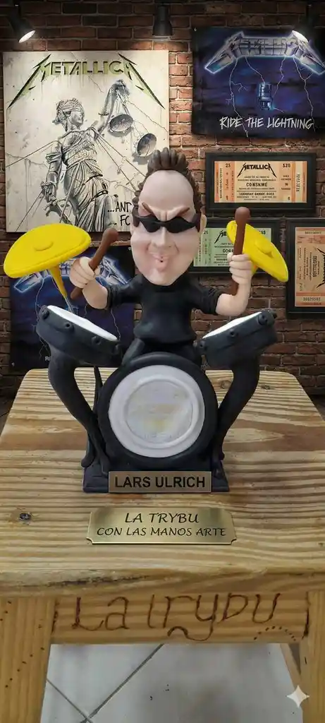 ¡Lleva la energía del escenario a tu casa! 🤘 Colección exclusiva de figuras tipo caricatura de los integrantes de Metallica. Cada pieza es una obra de arte única, esculpida y pintada totalmente a mano. ●Personajes disponibles: Lars Ulrich ●Material: Alta calidad con acabados detallados en instrumentos y vestimenta. ●Ideal para: Coleccionistas, fans del metal y decoración de espacios con estilo rockero.