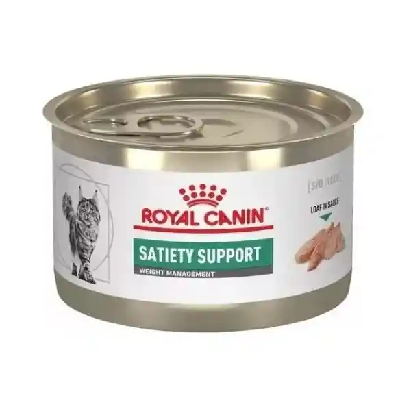 Royal Canin Satiety Gato Lata 145 g,Alimento húmedo veterinario para gatos con sobrepeso u obesidad.Ayuda a perder peso de forma segura,Alta en fibra: promueve saciedad entre comidas,Alta en proteínas: mantiene la masa muscular,Baja en calorías y grasa, Alto contenido de agua: apoya hidratación y volumen sin calorías