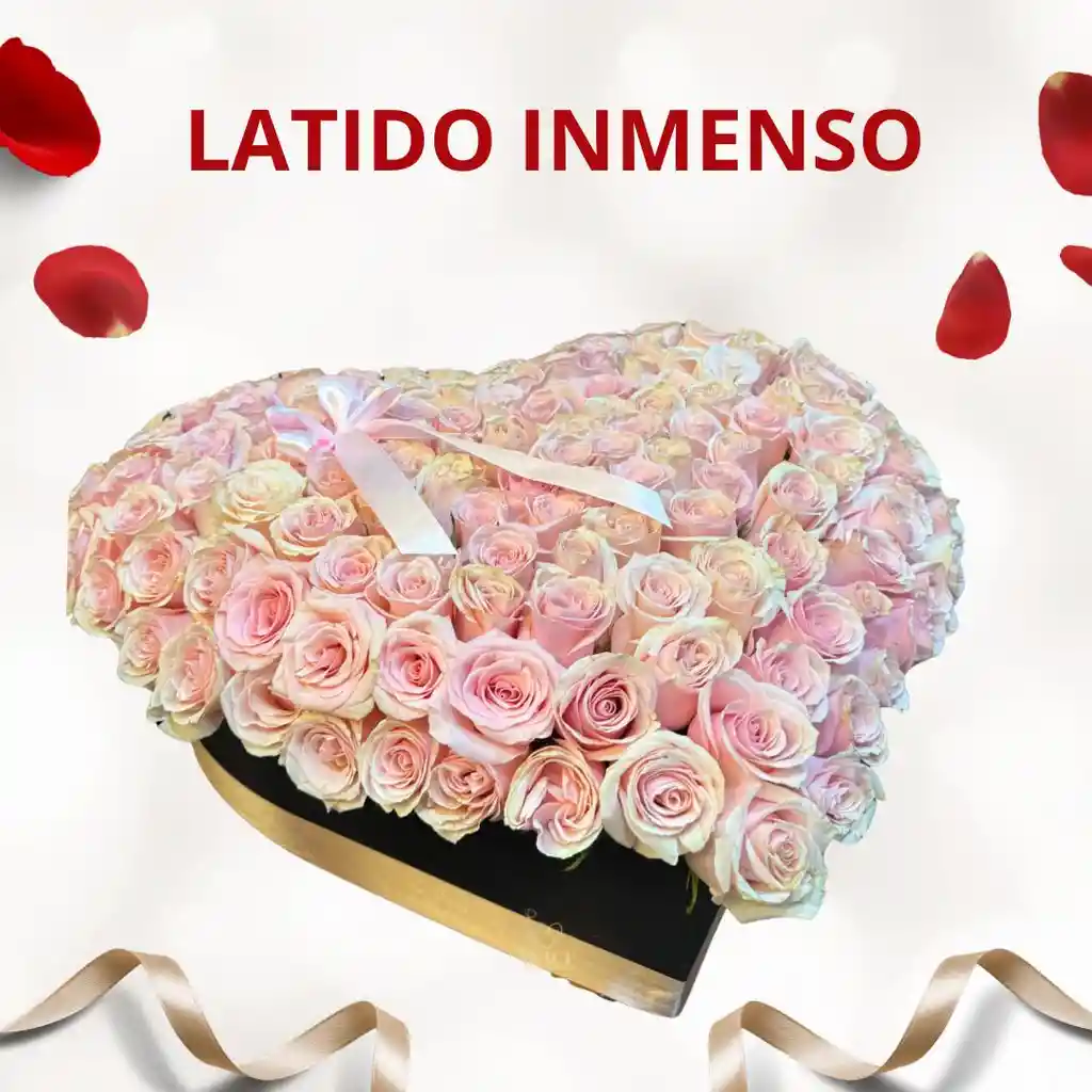 CAJA DE CORAZON CON APROXIMADAMENTE 100 ROSAS NATURALES (COLOR SUJETO A DISPONIBILIDAD)