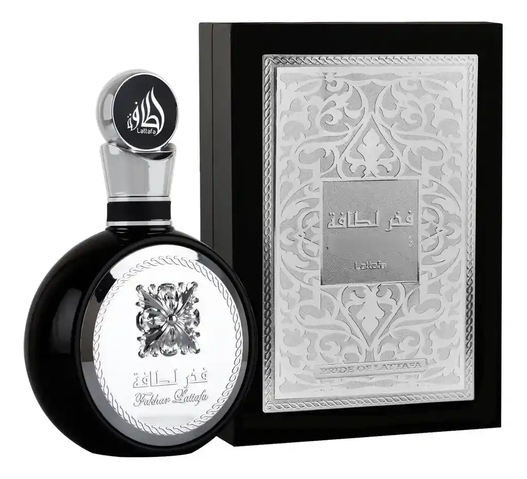 Fakhar Black de Lattafa Perfumes es una fragancia de la familia olfativa Oriental para Hombres. Fakhar Black se lanzó en 2022. Las Notas de Salida son manzana, bergamota y jengibre; las Notas de Corazón son lavanda, salvia, bayas de enebro y geranio; las Notas de Fondo son haba tonka, cedro, Amberwood y vetiver.