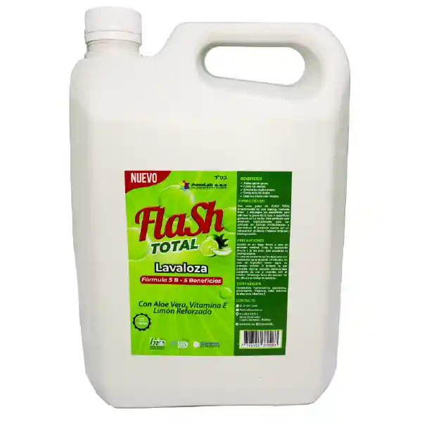 El lavaloza Flash Total es una maravillosa formula diseñada para el lavado de loza que corta la grasa al instante. Su excelente concentración de tensoactivos quita la grasa al instante y deja sus ollas y vajillas como nuevas.