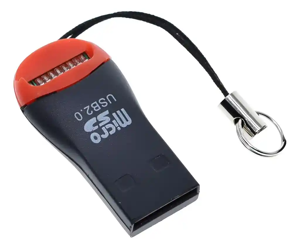 Lector de tarjetas USB 2.0 Transfiere tus archivos rápido y fácil ⚡ Compatible con memorias hasta 64 GB. Solo conecta y usa (Plug & Play). Diseño pequeño, liviano y portátil. Ideal para computador, celular o cámara 📸