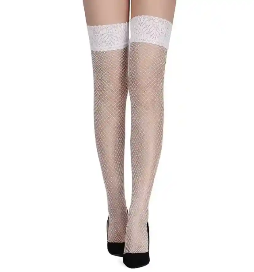 MEDIAS DE MALLA LENCERIA ENCAJE Medias en malla media pierna. Las medias son un plus de sensualidad para tus prendas perfectas para complementar tu lencería o disfraz favorito. Lúcete con tu pareja.. CARACTERÍSTICAS DESTACADAS Material: nailon y elastano. Talla: única (para adulto) Medias de malla.