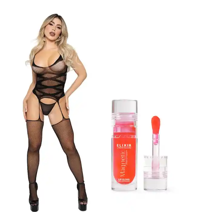 Conjunto Musa (Body con Medias) Déjate cautivar por el conjunto Musa, una pieza de lencería erótica que redefine la sensualidad y el estilo. Con su diseño de malla de red entrelazada y detalles seductores de tiras cruzadas, este conjunto de body con medias es perfecto para resaltar tu figura y crear una silueta inolvidable. Diseño: Body de malla con tiras cruzadas en la parte central, combinado con medias de red que alargan tus piernas y añaden un toque de provocación. Comodidad: Hecho con material elástico que se adapta perfectamente a tu cuerpo, brindando un ajuste cómodo mientras realza tus curvas con suavidad. Sensualidad: Las tiras entrelazadas y el corte audaz lo convierten en la prenda ideal para momentos especiales, donde quieres sentirte empoderada y deseada. Con el conjunto Musa, serás el centro de todas las miradas, combinando el lujo de la lencería con la emoción de la seducción. Ideal para una noche especial o para sorprender a tu pareja con una prenda que marcará la diferencia. *No incluye el panty* Magnetic Lip Gloss con Feromonas de Elixir Sutilmente irresistible. Poderosamente tú. Despierta tu magnetismo natural con Magnetic Lip Gloss, el brillo labial con feromonas diseñado para realzar tu atractivo, hidratar tus labios y elevar tu confianza con cada aplicación. Sus feromonas actúan como un aura invisible que potencia tu presencia, despertando miradas y conexiones de forma sutil y natural. Mientras tanto, su textura suave y ligera se desliza fácilmente, dejando un acabado brillante y natural que resalta tu belleza sin esfuerzo. Enriquecido con mantequilla de mango, nutre e hidrata profundamente, manteniendo tus labios suaves, jugosos y radiantes. ¿Por qué amarás Magnetic Lip Gloss? – Feromonas que atraen sutilmente Un toque invisible que eleva tu confianza y proyecta tu encanto natural. – Hidratación profunda con mantequilla de mango Una fórmula nutritiva que suaviza y protege tus labios, dándoles un brillo saludable y duradero. – Color natural, brillo irresistible Ideal para cualquier ocasión: resalta tu belleza. – Textura cómoda y ligera No es pegajosa, se desliza fácilmente y deja una sensación fresca y seductora. – Tu toque final de poder Perfecto para usar solo o sobre tu labial favorito, cada aplicación es un recordatorio de tu magnetismo. Magnetic Lip Gloss no es solo un brillo: Es una dosis de seguridad, sensualidad y autocuidado en cada toque. Sutilmente irresistible. Poderosamente tú. Propiedades cosméticas • Hidratación multicapas con efecto inmediato y duradero. • Refrescante, calmante y descongestivo. • Estimula la atracción sensorial a través del uso de feromonas. • Promueve la luminosidad, mejora la textura y protege frente al estrés oxidativo.