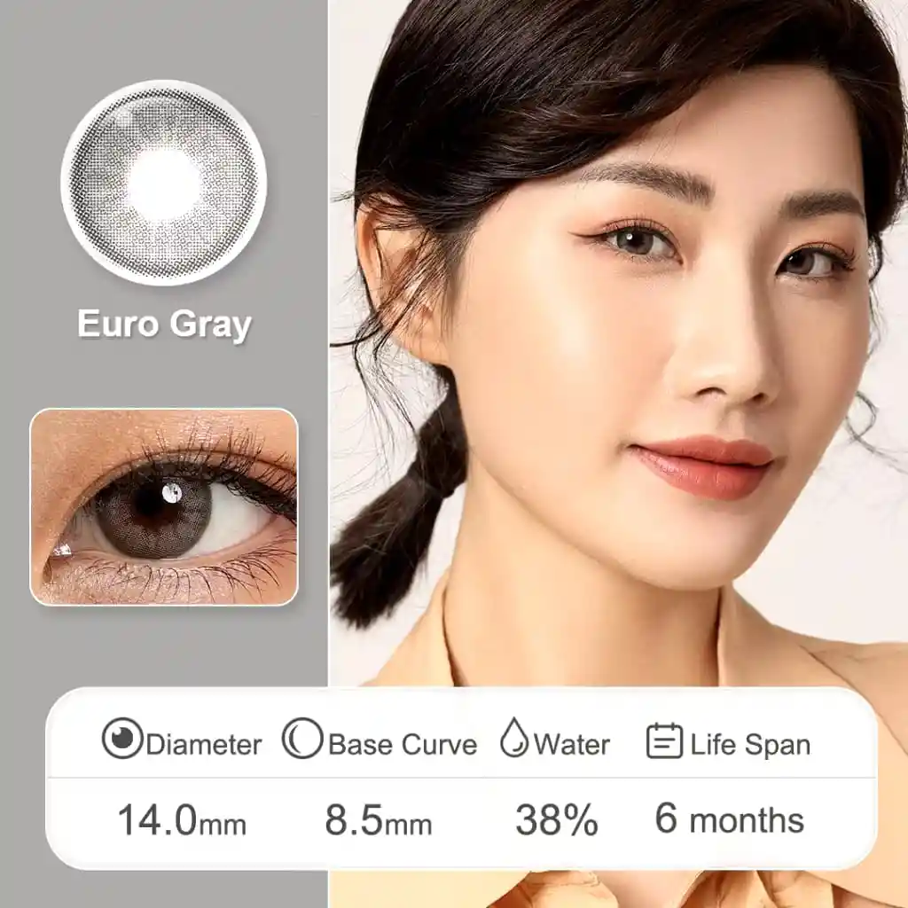 entes de contacto efecto natural para maquillaje, ocasiones especiales o uso diario Cosméticos, no medicinales Tono DESIRE II EURO GRAY Marca MAGISTER Durabilidad de 6 meses a un año 38% agua Diámetro 14.mm Eleva tu belleza y enamora a primera vista Incluye un par de lentes y portalentes