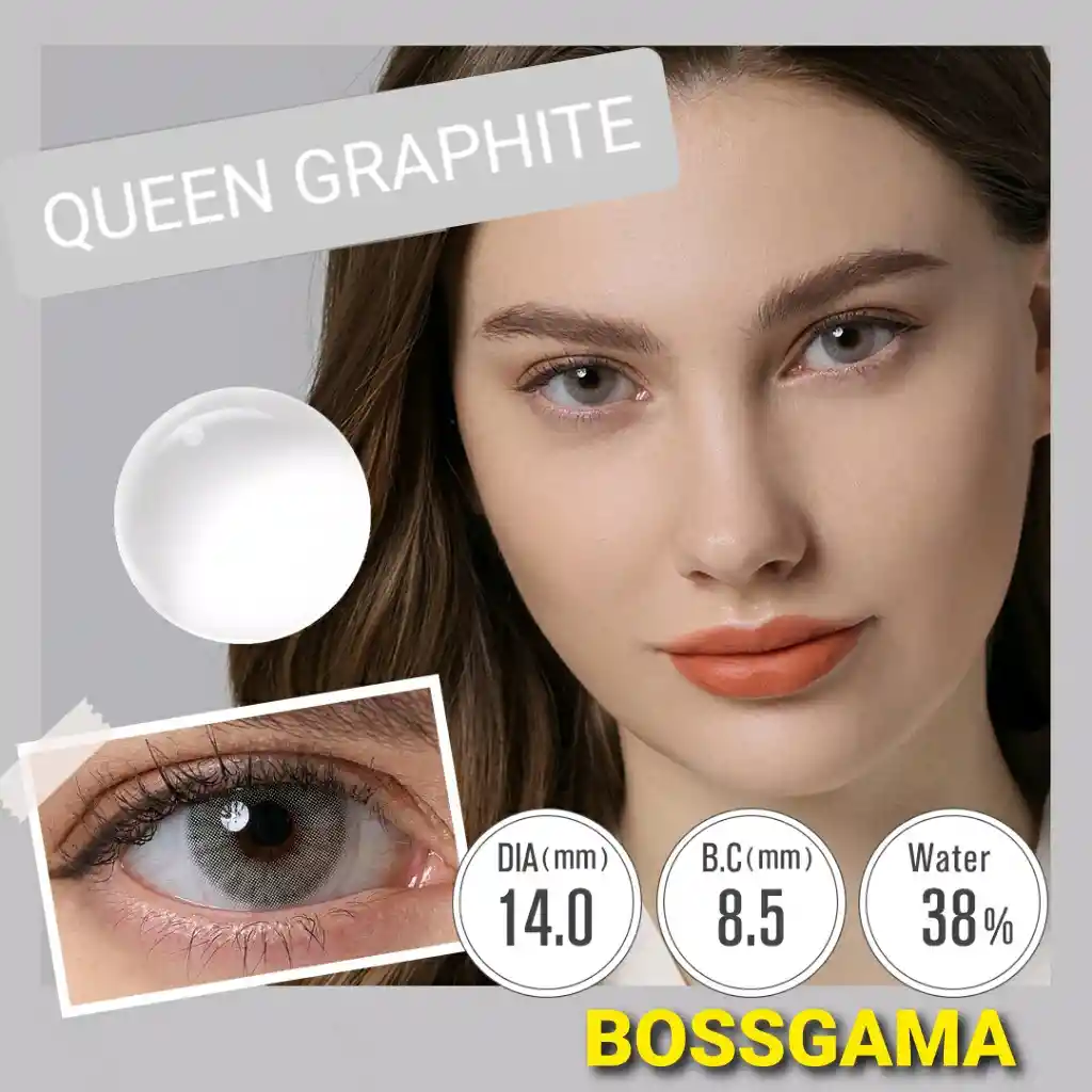 Lentes de contacto de uso cosmético tono: QUEEN GRAPHITE Gama: GRIS tamaño: 14mm duración: De 6 meses a 1 año Marca MAGISTER Efecto natural Incluye un par de lentes y portalentes. No incluye solución ni aplicadores Excelente calidad, cómodos, harán resplandecer tu mirada. Atraparás todas las miradas
