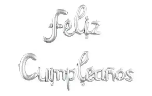 Letrero Globos Bombas Inflable Plateado Feliz Cumpleaños Cursivo Metalizado