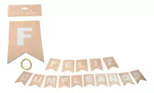 LETRERO - GUIRNALDA FELIZ CUMPLEAÑOS TIPO BANDERIN GRANDE ORO ROSA 20 X 16 CM CADA BANDERIN, MEDIDA APROXIMADA DE 2 MTS