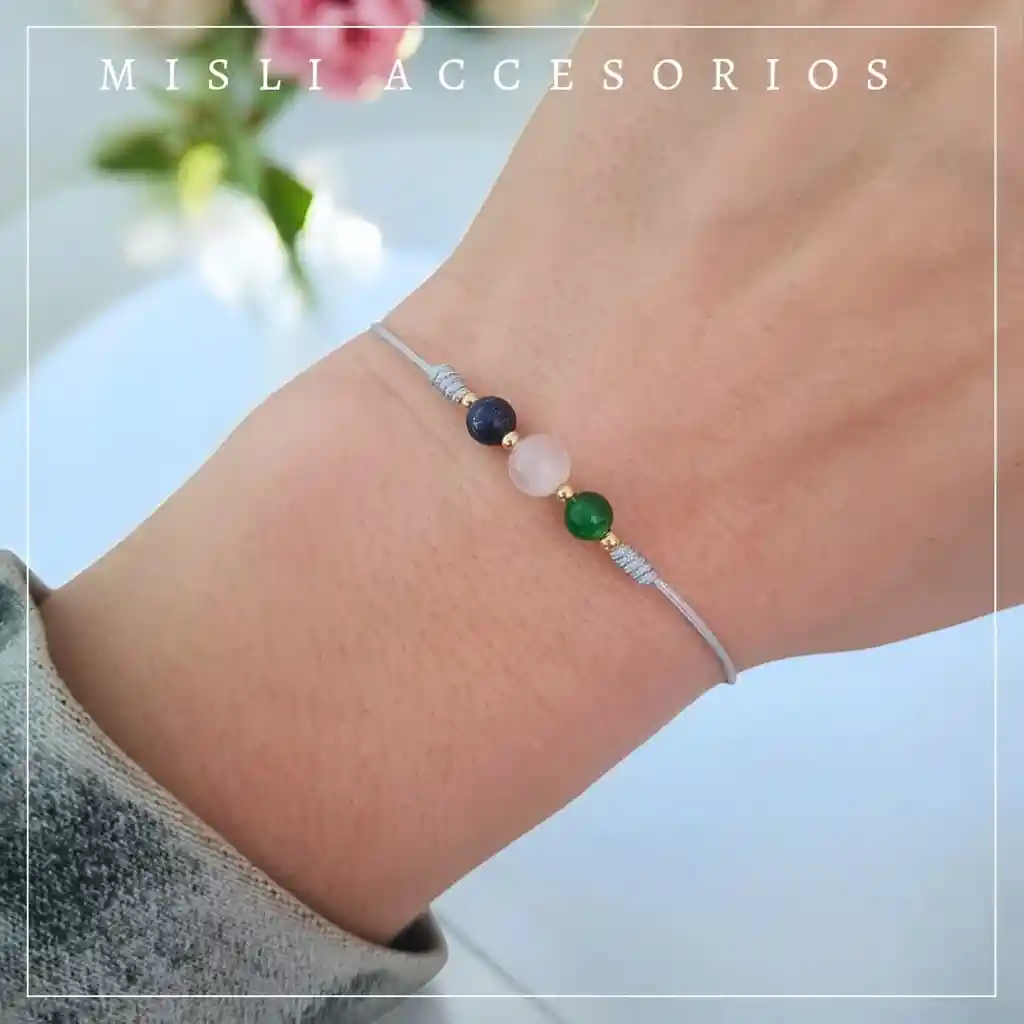 Conéctate con la energía de tu signo zodiacal Lleva contigo la fuerza de los astros con nuestra pulsera zodiacal con piedras naturales. Cada una está cuidadosamente diseñada con piedras auténticas que potencian las cualidades de tu signo, brindándote protección, equilibrio y armonía. Características: - Hecha con piedras naturales seleccionadas según tu signo: LIBRA: Jade - Lapislázuli - Cuarzo Rosado. - Energía alineada con tu elemento zodiacal (agua, fuego, tierra o aire) - Diseño exclusivo y ajustable para mayor comodidad Ya sea que busques fortaleza, serenidad o una conexión más profunda con el universo, este accesorio será tu amuleto ideal. Elige la tuya hoy y deja que el poder de los astros ilumine tu camino. Si deseas un color de hilo diferente al de la publicación, indícanos por mensaje una vez realices tu compra. Estamos atentos a responder cualquier duda o información adicional que necesites, con gusto te atenderemos!!