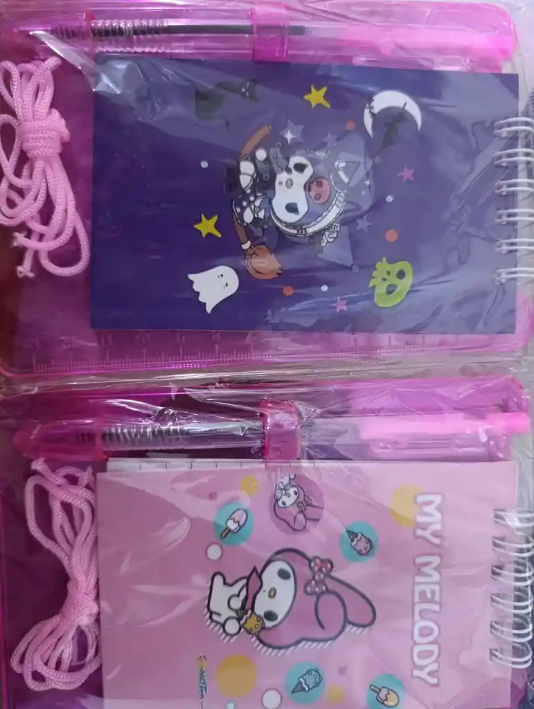 Diviértete anotando tus ideas con estos adorables sets de papelería de Sanrio 💕. Cada paquete incluye: ✔️ 1 cuaderno en espiral con portada kawaii (Kuromi o My Melody). ✔️ 1 bolígrafo a juego 🖊️. ✔️ 1 regla transparente 📏. ✔️ 1 cuerdita tipo colgante para mayor comodidad.