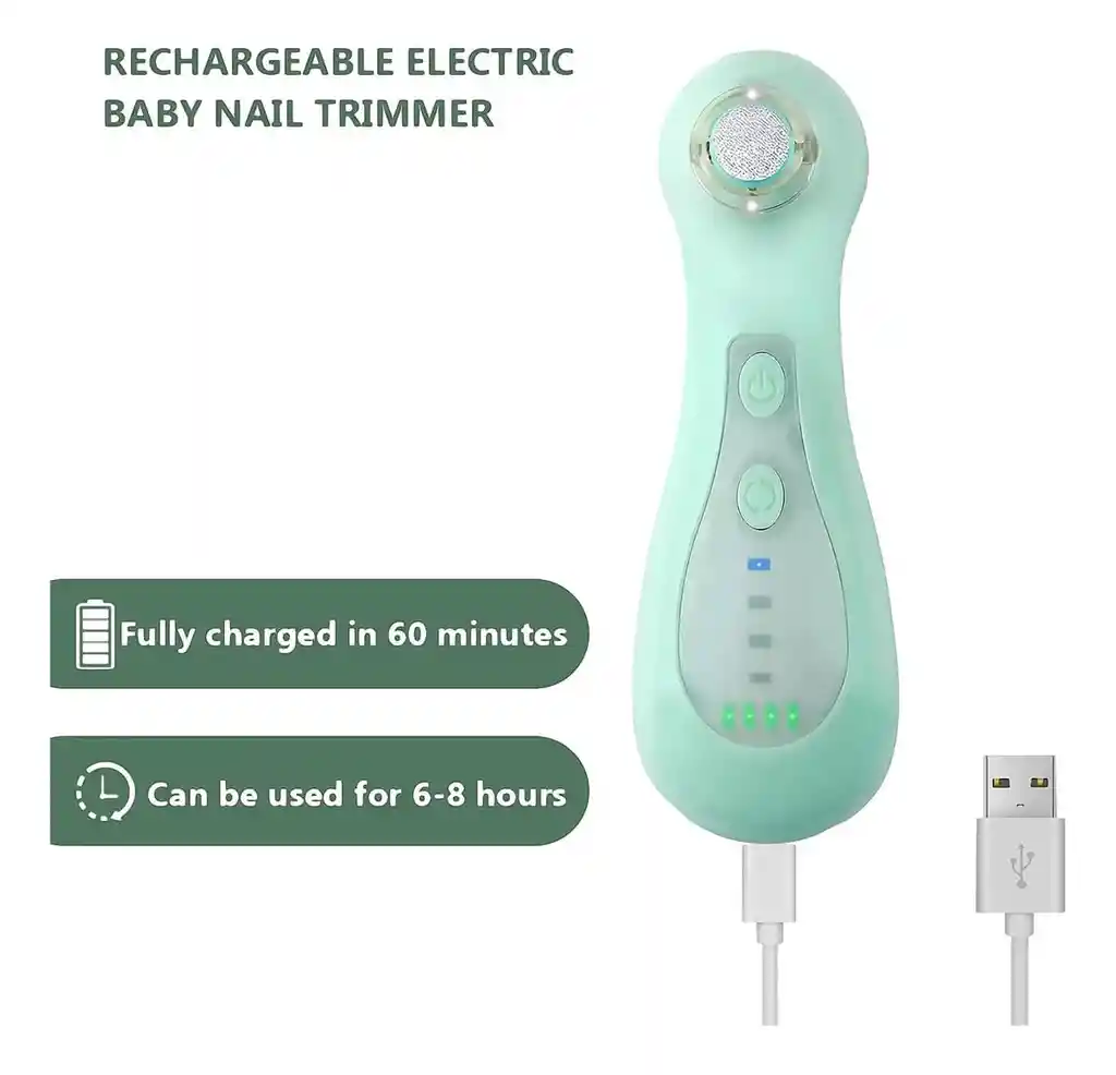 Descubre la Lima eléctrica recargable con cabezal intercambiable en un encantador color verde menta, diseñada para ofrecerte una experiencia de cuidado personal única. Con su cabezal intercambiable y velocidad ajustable, podrás ajustarlo según sus necesidades. Además, cuenta con una luz LED que se enciende automáticamente, asegurando que puedas usarlo con poca luz cuando el bebé duerme. Su textura delicada al tacto con la piel la convierte en la herramienta perfecta para mantener sus uñas impecables y suaves. Características: La Lima eléctrica recargable con cabezal intercambiable tiene una cubierta protectora frente a la almohadilla de molienda para evitar que el polvo de las uñas sea inhalado por el bebé. La Lima eléctrica recargable con cabezal intercambiable viene con 10 almohadillas de repuesto, también hay velocidades ajustables disponibles. La Lima eléctrica recargable con cabezal intercambiable para bebés no solo tiene una pantalla de batería de cuatro niveles en el panel, sino también una pantalla de velocidad de cuatro niveles. Estas pantallas pueden pedirle que elija la velocidad adecuada durante el uso y se cargue de manera oportuna después de su uso. Tiene una fuente de luz LED que se enciende automáticamente cuando el recortador de uñas funciona, iluminación suave sin deslumbramiento, la Lima eléctrica recargable con cabezal intercambiable es eficaz para arreglar las uñas para el bebé por la noche. Dimensiones del paquete: 6,38 x 5,04 x 2,09 pulgadas Recargable
