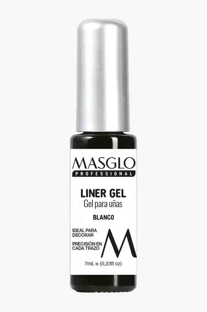 Permite trazar líneas finas, detalles complejos, y formas geométricas sin que el producto se corra. Formulación de alta consistencia, diseñada para mantener su forma sin expandirse sobre la uña. Envase con pincel, que simplifica su uso. Modo de Uso Finalizada la aplicación del color de Masglo Gel Polish, proceda a decorar con liner gel, lleve a curar en lampara UV LED por 60 seg y finalice con Brillo Top Coat, cure durante 60 segundos.