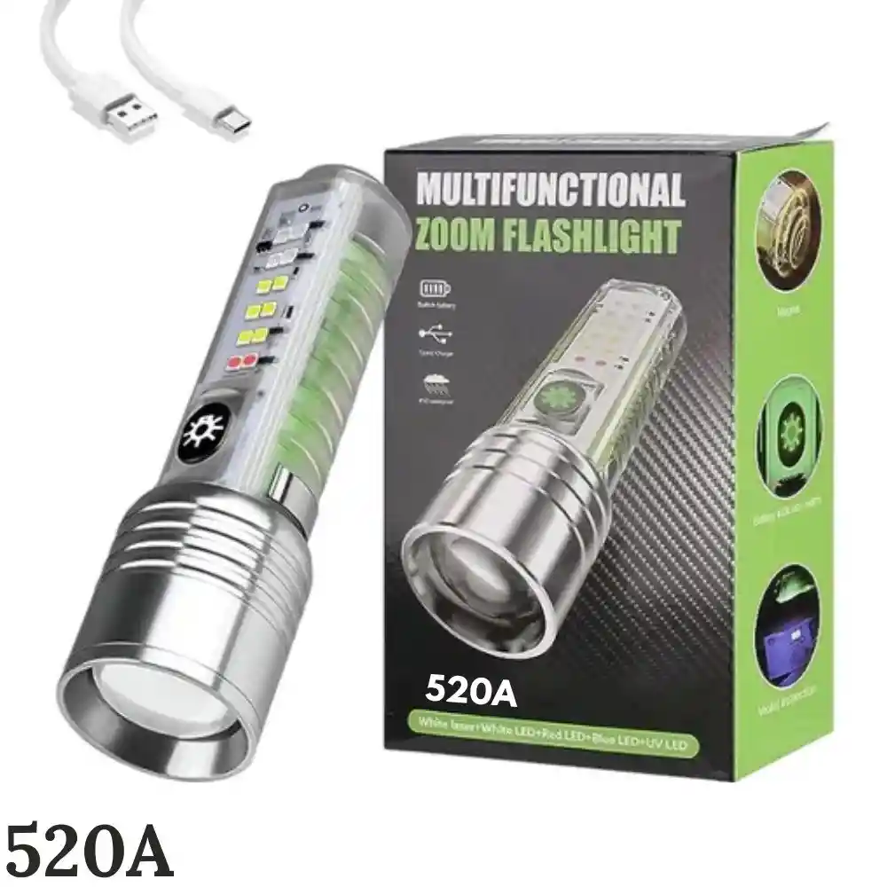 Ilumina tus aventuras y necesidades de forma eficaz con nuestra linterna 520A, diseñada para ofrecer un rendimiento excepcional en diversas situaciones. - Tecnología LED: Equipada con un potente LED, esta linterna proporciona una luz brillante y eficiente que ilumina de manera óptima incluso en entornos oscuros. El LED es conocido por su alta luminosidad y durabilidad, garantizando una iluminación clara y extendida. - Zoom Ajustable: La función de Zoom ajustable te permite modificar el enfoque del haz de luz para adaptarse a diferentes situaciones. Desde un haz amplio para iluminar áreas grandes hasta un foco estrecho para distancias mayores, la linterna se adapta a tus necesidades con facilidad. - Recarga USB Conveniente: Olvídate de las pilas desechables. La linterna cuenta con una batería recargable que se carga fácilmente a través de un puerto USB. Esto no solo es más ecológico, sino que también te asegura estar siempre listo para usar la linterna sin interrupciones. - Diseño Compacto y Resistente: Con un diseño robusto y ergonómico, la linterna es cómoda de usar y fácil de transportar. Su construcción resistente asegura durabilidad en condiciones adversas, haciendo de esta linterna una herramienta confiable para cualquier situación. - Versatilidad de Uso: Ideal para camping, senderismo, actividades al aire libre, trabajos nocturnos o emergencias en el hogar. Su potente luz y funcionalidad de Zoom ajustable la convierten en una herramienta versátil y esencial para cualquier caja de herramientas.