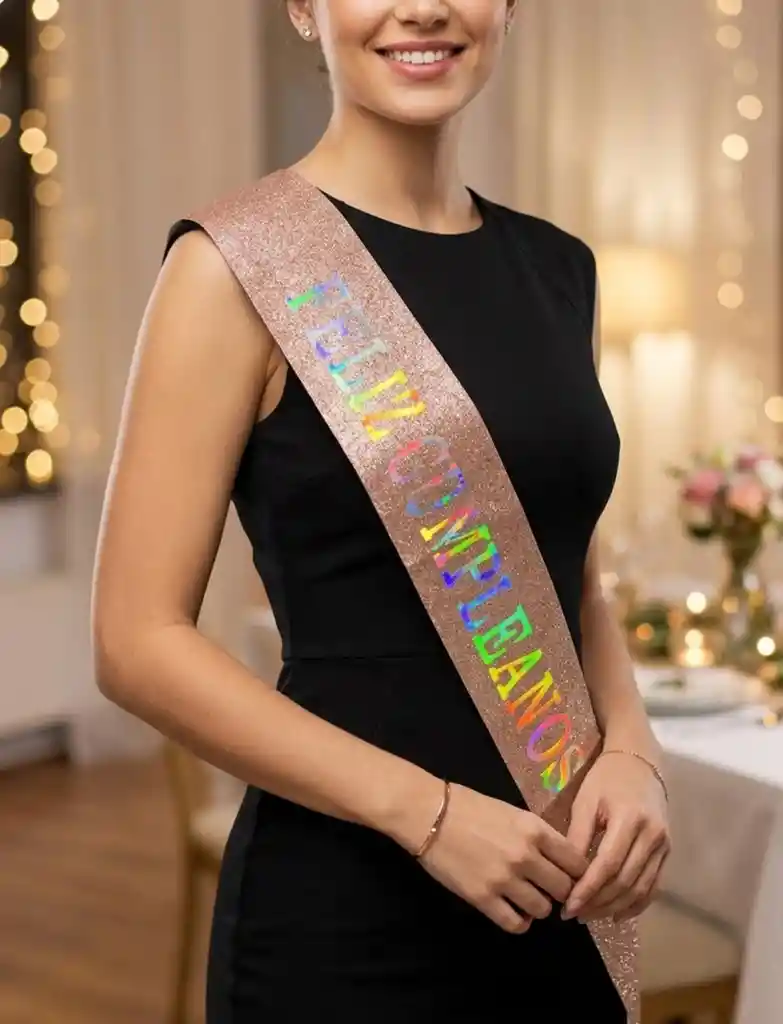 Listón oro rosa escarchado 💖✨ con banda “Feliz Cumpleaños” 🎉🎂, perfecto para que el cumpleañero o cumpleañe...Ver más