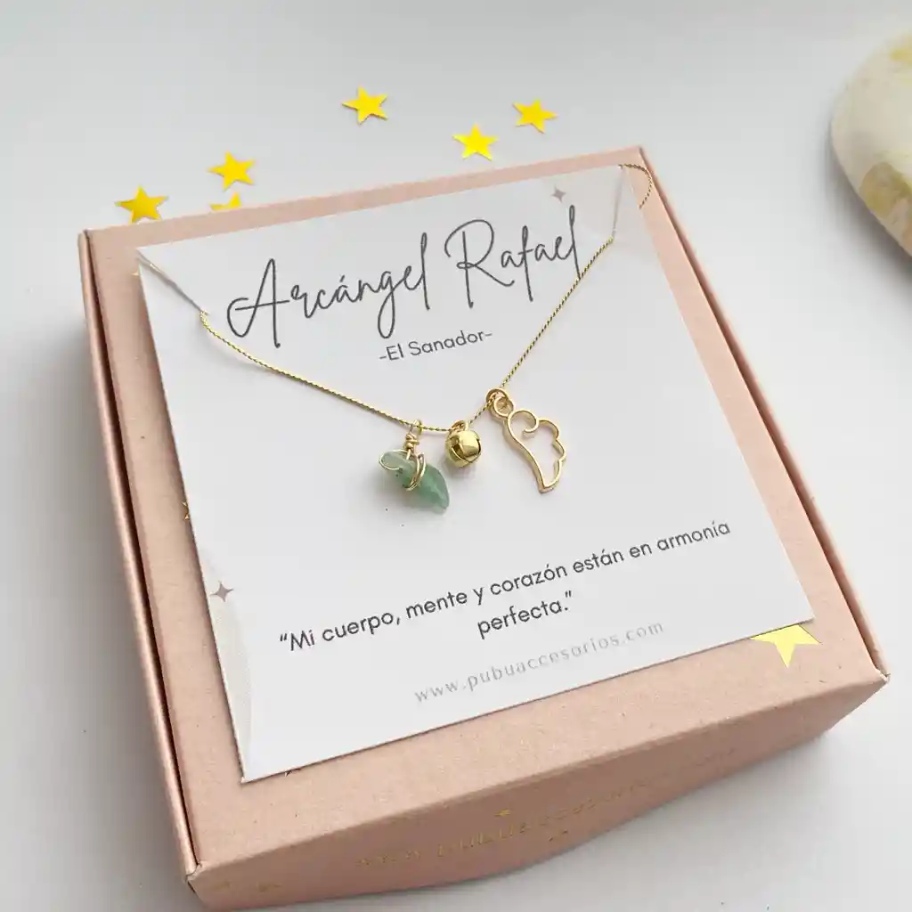 LA1-3 🌿 Arcángel Rafael – El Sanador 💚🌿Cuarzo: Jade Propósito: Sanación física y emocional, equilibrio del corazón. Afirmación: “Mi cuerpo, mente y corazón están en armonía perfecta.” 🔮 Ritual: Coloca el collar sobre el pecho durante unos minutos. Respira profundo y visualiza una luz verde entrando a tu cuerpo. Repite tu afirmación mientras imaginas que esa luz te sana por dentro. 🗓️ Día de conexión: Jueves