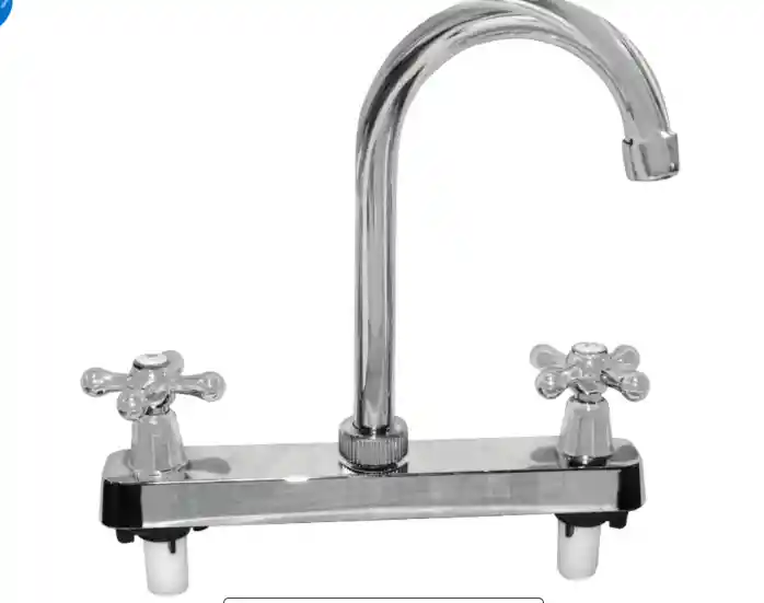 Cuello en acero inoxidable, cuerpo plástico con triple capa de cromo en carcaza y pomos.