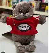 Llavero Peluche Juguete Gato Gris Con Saco Rojo