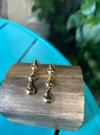 Aretes de topo con tres gotas colgantes color dorado. Largo 4 cm Material: rodio