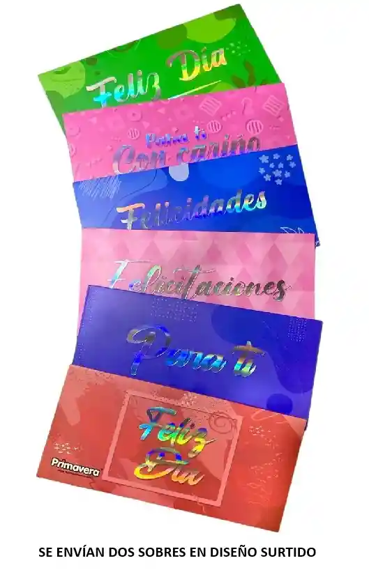 Sobres para lluvia de sobres con diseños surtidos x 2 unidades marca Primavera diseños surtidos. Regala y Expresa Todos Tus Sentimientos Con la Genial Lluvia de Sobres de cumpleaños para obsequiar dinero y enviar un mensaje en ese día especial.