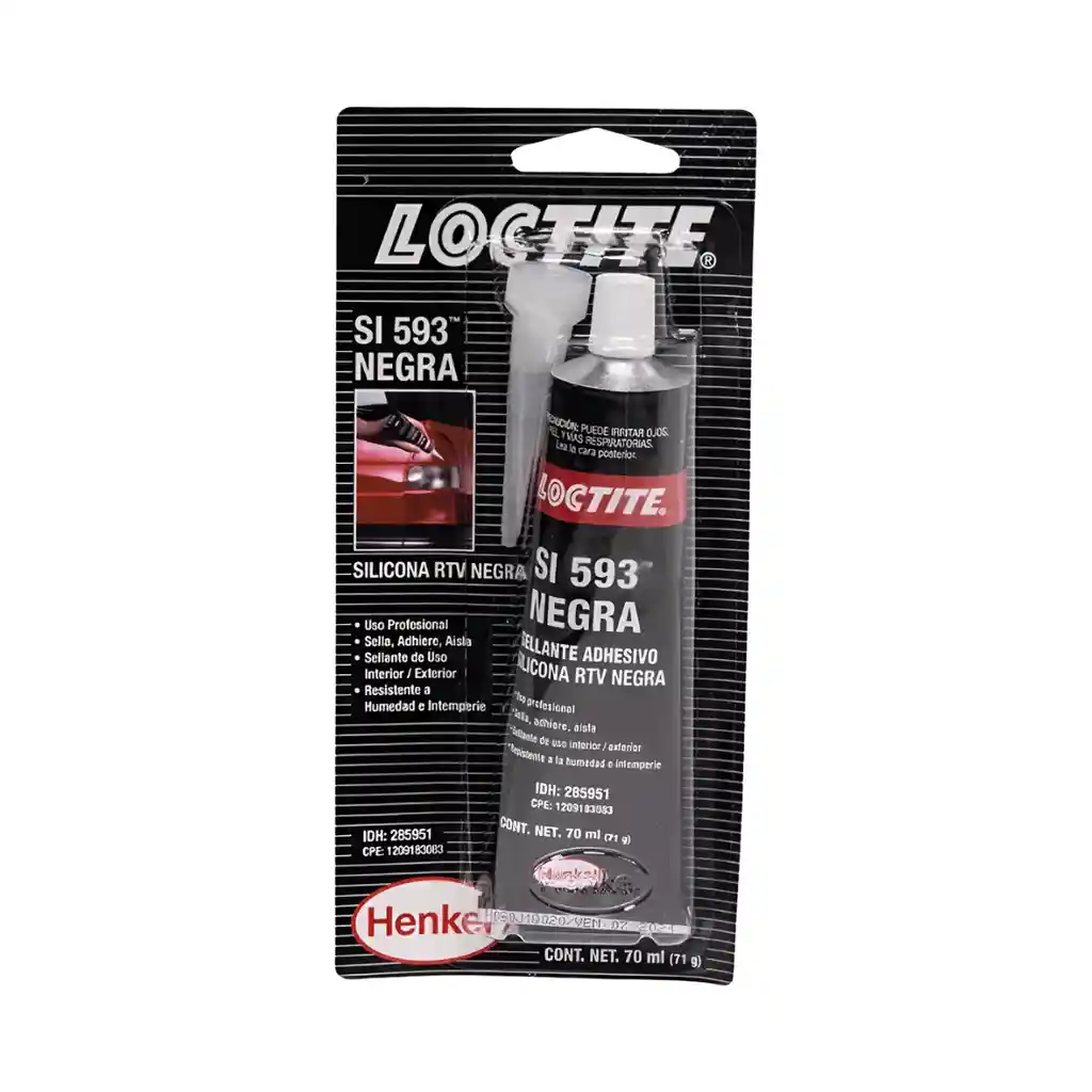 Adhesivo Sellador a base de silicón monocomponente de uso general, que cura a temperatura ambiente para formar un sello elástico resistente. LOCTITE® es un adhesivo sellador a base de silicón monocomponente, color negro y de uso general que cura a temperatura ambiente para formar un sello elástico resistente. No escurrira en aplicaciones verticales. Diseñado para soportar ciclos de temperaturas extremas, luz ultravioleta y ozono. NO PUEDE pintarse