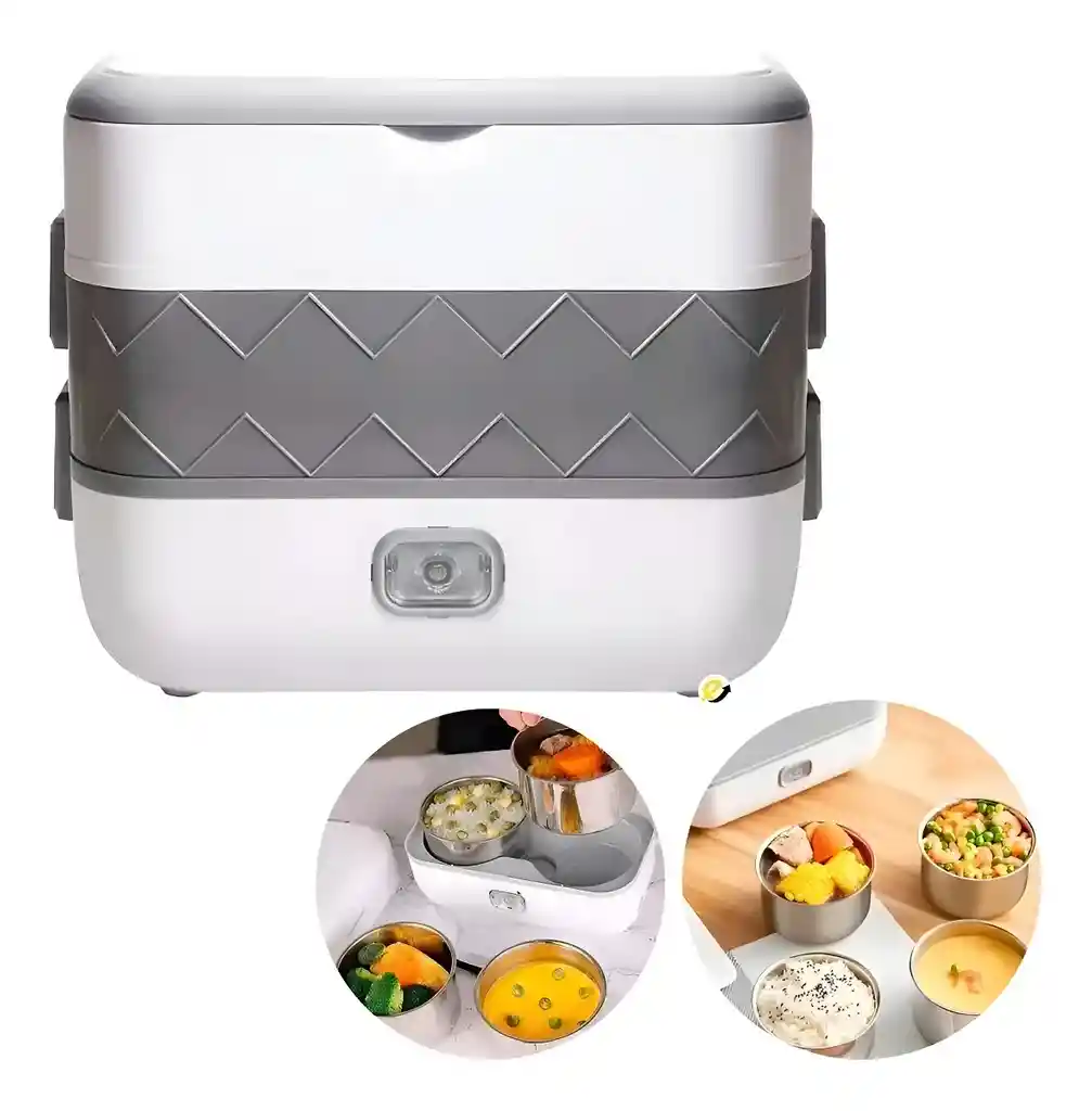 NCLUYE Revestimiento de acero inoxidable Cable de alimentación Cubierta superior Calentamiento PTC Cocción con un botón, funcionamiento sencillo; 1. Mango humanizado 2. Disipación del calor en la parte inferior 3. Enchufe de tres niveles estándar europeo Parámetros del producto: Nombre del producto: fiambrera de cocina multifunción; Capacidad: 1L; Potencia de calentamiento: 200W; Tamaño del producto: 175 x 155 x 135cm.