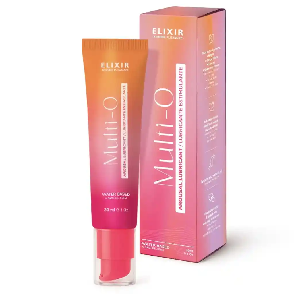Descubre tu poder, reclama tu placer. Multi O es un lubricante íntimo estimulante que despierta tu deseo, eleva tu placer y enciende la conexión en pareja. Diseñado para quienes que quieren sentirse más, disfrutar más y vivir su sexualidad sin límites. Su fórmula única combina extractos naturales de jengibre, ginkgo biloba, ginseng y flor de spilanthes, conocidos por sus propiedades afrodisíacas y estimulantes, con L-arginina, un activo que intensifica la sensibilidad y activa la circulación en la zona íntima, potenciando cada encuentro. Con Multi O, los sentidos se agudizan, la excitación se eleva y los orgasmos se intensifican. Todo sin alterar tu pH natural. Extractos Naturales Estimulantes botánicos que despiertan tu libido y aumentan la respuesta sexual. Orgasmos Más Intensos Siente más profundamente. Llega más lejos. Aumenta el clímax y prolonga el placer. Placer en Pareja Diseñado para aumentar la sensibilidad de ambos, reforzando la conexión. Respetuoso con tu Cuerpo Lubricación ligera, sedosa y compatible con el pH íntimo femenino. Impulso de Libido con L-Arginina Activa la circulación y potencia las sensaciones desde el primer contacto. Descubre tu poder, reclama tu placer. Beneficios •Estimula el clímax y mejora la respuesta sexual. •Aumenta la excitación y activa la libido. •Genera una experiencia multisensorial con efecto caliente-refrescante y sensaciones vibrantes. •Contiene extractos naturales de reconocida acción afrodisíaca. • Formulado con L-arginina para intensificar el placer. • Compatible con la piel íntima, respeta el pH natural Marca Elixir Modo de uso Aplique una cantidad suficiente del lubricante Elixir sobre el área deseada para facilitar la lubricación durante las relaciones sexuales. Puede utilizarse con otros dispositivos médicos y juguetes sexuales. Reaplique según lo desee. Advertencias No es anticonceptivo. Puede causar irritaciones y alergias en personas sensibles a sus componentes. No usar si el empaque está dañado. Mantener fuera del alcance de los niños. No previene enfermedades de transmisión sexual (ets). Producto sólo para adultos. Textura Gel Tamaño 30 ML Registro sanitario 2025DM-0030097