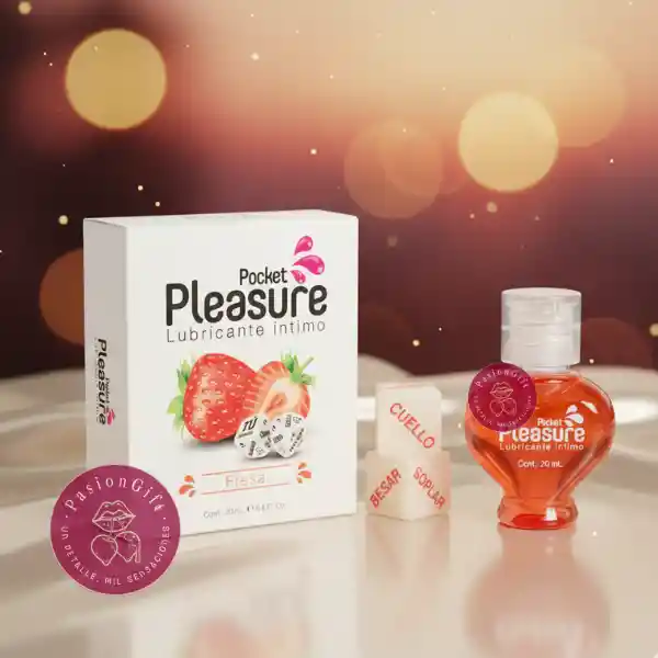 Set íntimo pensado para añadir sabor, suavidad y diversión a los momentos en pareja. El lubricante con sabor a fresa aporta una sensación dulce y agradable, ideal para masajes sensoriales y momentos de cercanía, mientras que los dados de juego invitan a explorar nuevas formas de conexión. Su fórmula a base de agua ayuda a complementar la lubricación natural, reduciendo la fricción y facilitando una experiencia más cómoda y fluida. Compatible con preservativos y accesorios íntimos. Características: • Sabor dulce a fresa • Lubricante a base de agua, suave y ligero • Ayuda a reducir la fricción y mejorar la lubricación • Compatible con preservativos y accesorios íntimos • Incluye dados de juego para explorar en pareja • Formato pocket 20 ml, práctico y discreto Modo de uso: Aplicar una pequeña cantidad en la zona deseada y reaplicar según sea necesario. Utiliza los dados como guía para añadir un toque divertido al encuentro. Contenido: Lubricante sabor fresa 20 ml + dados de juego Base: Agua Sabor: Fresa