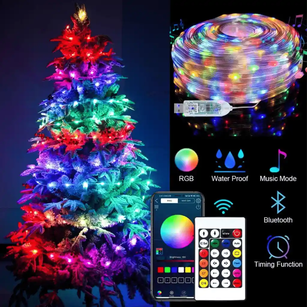 *** SOMOS RAVESTORE ONLINE **** ¡Transforma tu espacio con nuestra Cadena de Luces LED RGB! Ilumina tus momentos con nuestra Cadena de Luces LED RGB direccionable. Perfecta para cualquier ocasión, estas luces son ideales para decorar tu hogar, fiestas o eventos especiales. Características Principales: Colores Personalizables: Disfruta de una amplia gama de colores gracias a su tecnología RGB. ¡Crea el ambiente perfecto para cada momento! Control Remoto: Viene con un control remoto que te permite cambiar colores y efectos de manera sencilla. Conectividad Bluetooth: Conéctate a través de Bluetooth y controla tus luces desde tu smartphone con la APP dedicada. Fácil Instalación: Con cable transparente, se integran perfectamente en cualquier decoración sin desentonar. Especificaciones Técnicas: Voltaje: 110 v Uso: Interiores Longitud: 10 metros Incluye 100 bombillos Versatilidad: Ideal para decorar habitaciones, salas de fiestas, jardines, y más. ¡Deja volar tu creatividad y transforma cualquier espacio en un lugar mágico! ¡No te quedes sin la tuya! Dale vida a tus espacios con esta increíble cadena de luces LED RGB. ¡Compra lo mejor, compra con RaveStore Online!