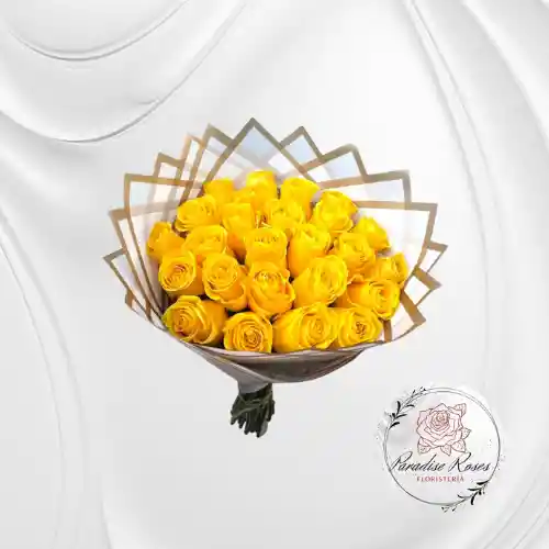 Un encantador bouquet de 24 rosas amarillas que transmite alegría, optimismo y energía positiva. Este ramo es ideal para iluminar cualquier ocasión y llenar el ambiente de calidez y felicidad. Agradecimientos o felicitaciones. Detalles de amistad o cariño sincero.