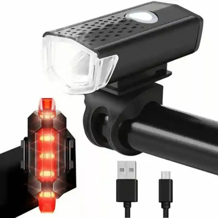 ESPECIFICACIONES IPX6 Impermeable, Viaje seguro en la noche lluviosa --- La luz trasera recargable con IPX6 impermeable y a prueba de polvo, evita que el rocío de agua desde cualquier dirección ingrese a la luz incluso con lluvia intensa. La luz de bicicleta potente y recargable se puede cargar completamente en 2.5-3.5 horas, y el tiempo de trabajo es de aproximadamente 4-8 horas. Puedes cargar la luz de la bicicleta a través de un ordenador o cualquier otro dispositivo con puerto USB. Incluimos un cable de carga USB. Esta luz de bicicleta de 350 lúmenes tiene una batería incorporada de 2000 mAh y el iluminador de luz de bicicleta se puede ver a una distancia de 300 a 500 metros. Puede girar 360 grados y se adapta a todas las bicicletas, y puede ajustarlo en cualquier dirección. Gracias al portalámparas ajustable, los faros y las luces traseras se pueden instalar fácilmente en bicicletas de cualquier tamaño. Tiene una amplia gama de usos, no solo luces para bicicletas, sino también como linternas de emergencia, colocadas en autos, sótanos, áticos y kits de emergencia. Se utiliza para correr, trotar, caminar, acampar, pasear perros, andar en bicicleta, reemplazar llantas, actividades nocturnas para niños y familias, cortes de energía, etc. Asegúrese de estar seguro en todo momento del día para una mayor visibilidad y comodidad. CONTENIDO 1 x luz delantera (luz blanca) 1 x luz trasera (luz roja) 2 x cable USB 2 x soporte de fijación de silicona GARANTÍA: 2 MESES