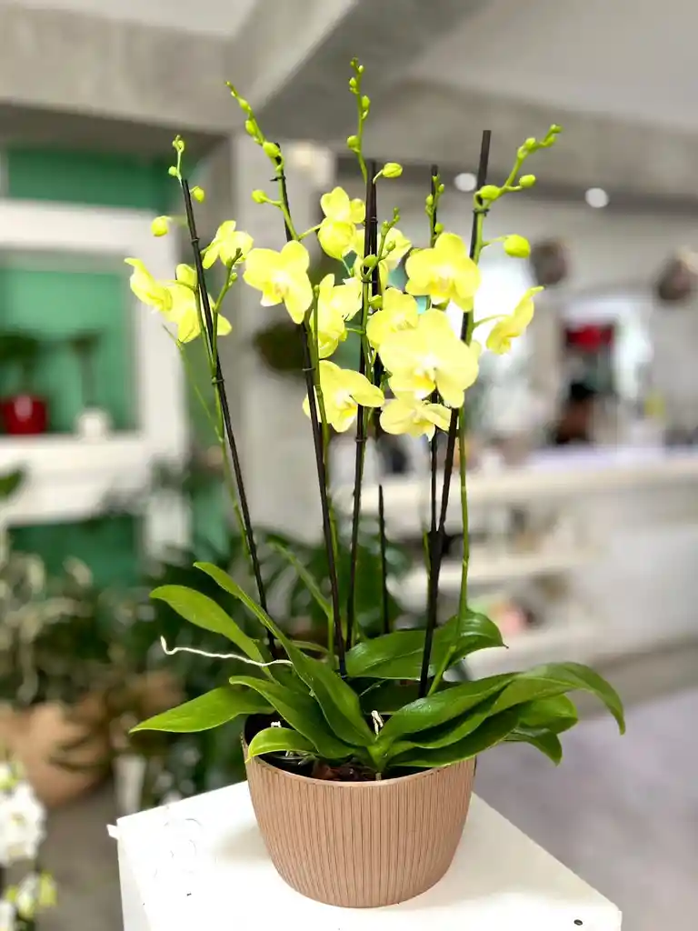 Luz que Abraza – Orquídeas Amarillas Ilumina cualquier espacio con este arreglo de orquídeas amarillas (entre 4 y 5 espigas como mínimo), símbolo de alegría, gratitud y buena energía. Luz que Abraza llega en un bowl plástico decorativo, listo para regalar y acompañado de tarjeta personalizada. Es el detalle perfecto para cumpleaños, agradecimientos o para sorprender sin motivo. ⚠️ Unidades limitadas. ¡Quedan pocas disponibles! 👉 Pídelo ahora y sorprende hoy mismo con un regalo lleno de luz.