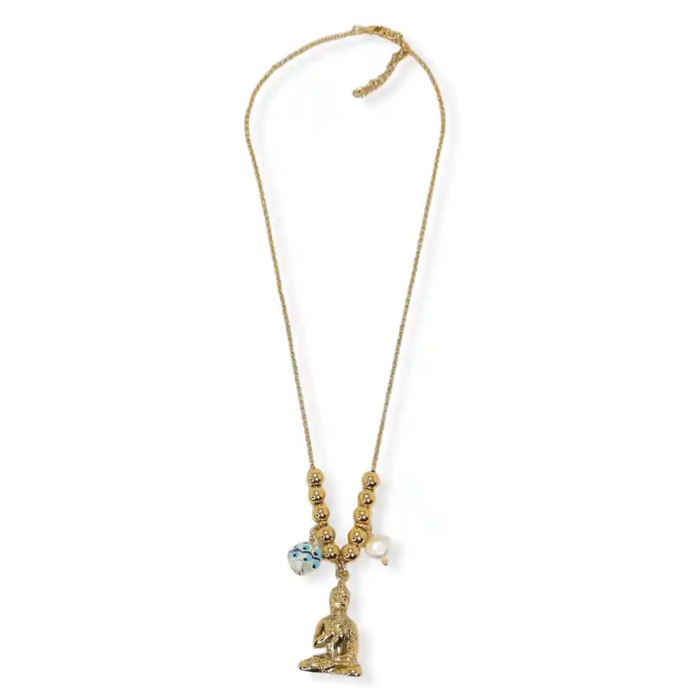 Collar elaborado artesanalmente en bronce con baño en oro de 18 quilates que integra en su diseño único, diferentes elementos que lo llenan de simbolismo. Es una pieza atemporal, que brinda múltiples oportunidades para combinarlo y sin dudarlo al momento de lucirlo no pasarás desapercibida; por el contrario, te hará brillar. Producto distribuido por Paralelos Accesorios Largo cadena : 45 cm Peso: 30 gramos - Garantía de 30 días en acabados bajo condiciones normales de uso - Al ser una pieza ensamblada de forma artesanal el producto entregado puede presentar diferencias de colores y acabados al expuesto en la fotografía