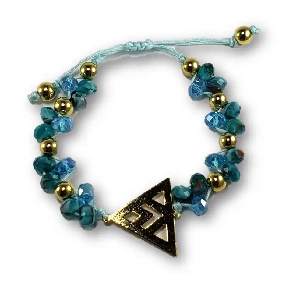 Así como únicas, cada pulsera cuenta una historia llena de sentimientos y buenos recuerdos. Dale un toque diferente a tu outfit para que la magia de nuestras pulseras perdure todo el día, pues las hemos creado llenas de significado y amor para inspirar y empoderar. Producto distribuido por Paralelos Accesorios Tipo de pulsera: Tejida ajustable Materiales -Gemas: Murano color aguamarina -Dije: Bronce con baño brillante -Elementos metálicos: bronce con baño en oro 18k Tamaño aproximado: 18 cm de diámetro Peso: 18 gramos - Garantía de 30 días en acabados bajo condiciones normales de uso. Cada pulsera integra diferentes elementos y materiales que merecen un cuidado especial. - Al ser una pieza ensamblada de forma artesanal el producto entregado puede presentar diferencias de colores y acabados al expuesto en la fotografía