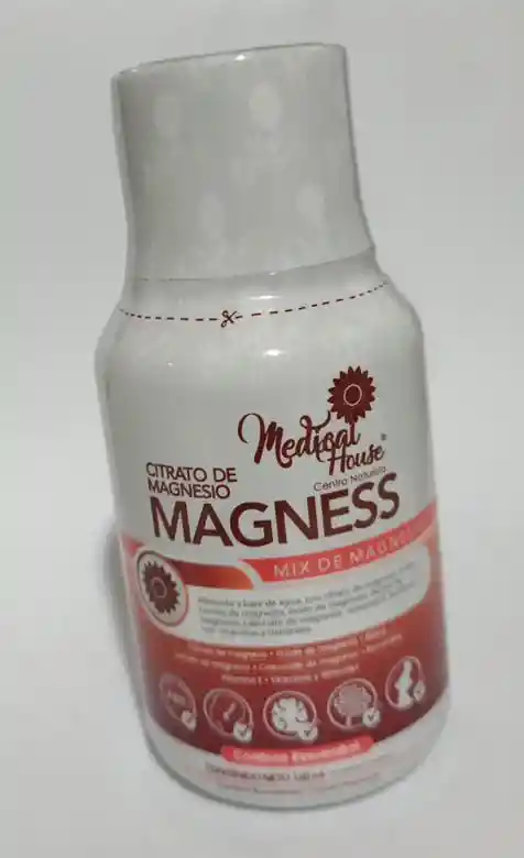 Magness - Citrato de Magnesio 120 ml es la fórmula perfecta para cubrir la necesidad diaria de magnesio, un mineral esencial para el equilibrio y bienestar de tu cuerpo. Cada porción aporta 400 mg de magnesio, combinando diferentes presentaciones para maximizar sus beneficios. Esta mezcla única incluye: Proteína vegana hidrolizada, que contribuye a la nutrición muscular. Probióticos y prebióticos, que mejoran tu salud digestiva y potencian la absorción de vitaminas y minerales esenciales. ¿Por qué elegir Magness? El magnesio es vital para múltiples funciones del organismo. Magness combina diferentes formas de magnesio para brindar un apoyo integral: Citrato de Magnesio: ideal para reducir migrañas, calambres musculares y síntomas de ansiedad y estrés. Además, ayuda a mejorar el sueño y relaja el sistema nervioso. Cloruro de Magnesio: alivia dolores musculares y tensiones, combate la fatiga y mejora el funcionamiento intestinal, combatiendo el estreñimiento. Lactato de Magnesio: equilibra el sistema nervioso, mejora la recuperación tras actividad física y favorece la absorción de calcio para huesos fuertes. Carbonato de Magnesio: ayuda a un mejor descanso nocturno, reduce la fatiga y alivia la acidez estomacal. Óxido de Magnesio: esencial para la función nerviosa y muscular, regula la temperatura corporal y ayuda a controlar la presión arterial elevada. Beneficios principales: Aporta 400 mg de magnesio por porción para el bienestar general. Mejora la función muscular y nerviosa. Alivia el estrés, ansiedad y migrañas. Favorece el tránsito intestinal y combate el estreñimiento. Promueve un sueño reparador y el descanso. Incluye proteína vegana hidrolizada y probióticos para un soporte digestivo completo. Recomendado para: Personas con deficiencia de magnesio. Deportistas y personas activas que buscan mejor recuperación muscular. Quienes sufren de migrañas, estrés o ansiedad. Personas que desean mejorar su salud digestiva y calidad del sueño. Modo de uso: Tomar la dosis recomendada diariamente, preferiblemente diluida en agua, para aprovechar todos sus beneficios. Magness - Citrato de Magnesio 120 ml es tu aliado ideal para recuperar energía, relajarte y cuidar tu salud desde adentro. ¡Empieza hoy a sentir el poder del magnesio en tu cuerpo! Consulta siempre con un profesional de la salud antes de iniciar cualquier suplemento, especialmente si tienes condiciones médicas preexistentes o estás bajo tratamiento.
