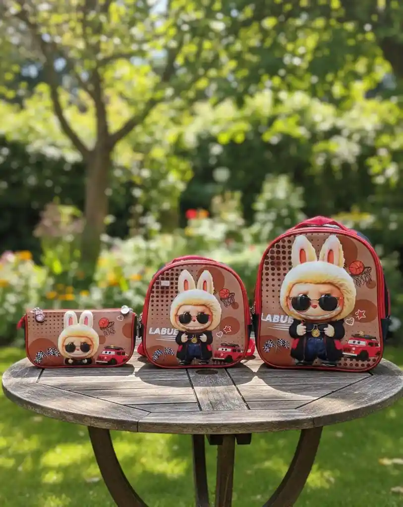 🎒🐰 Set Infantil Labubu – Mochila + Lonchera + Cartuchera 🐰🎒 ✨ Hermoso set infantil con tierno diseño Labubu con orejitas de conejo, ideal para niños y niñas. Incluye mochila, lonchera y cartuchera, todos combinados en tonos café y rojo 🤎❤️ con detalles divertidos y modernos. 🎒 Mochila: cómoda y espaciosa, perfecta para cuadernos y útiles escolares 📚✏️ 🥪 Lonchera: práctica para llevar la merienda diaria 🍎🥤 ✏️ Cartuchera: ideal para organizar lápices, colores y accesorios 🎨🖊️ 🧵 Material resistente, liviano y fácil de limpiar, ideal para el uso diario. 🎁 Perfecto para el colegio, salidas o como regalo especial. 🌟 Diseño tierno • 🌟 Funcional • 🌟 Duradero