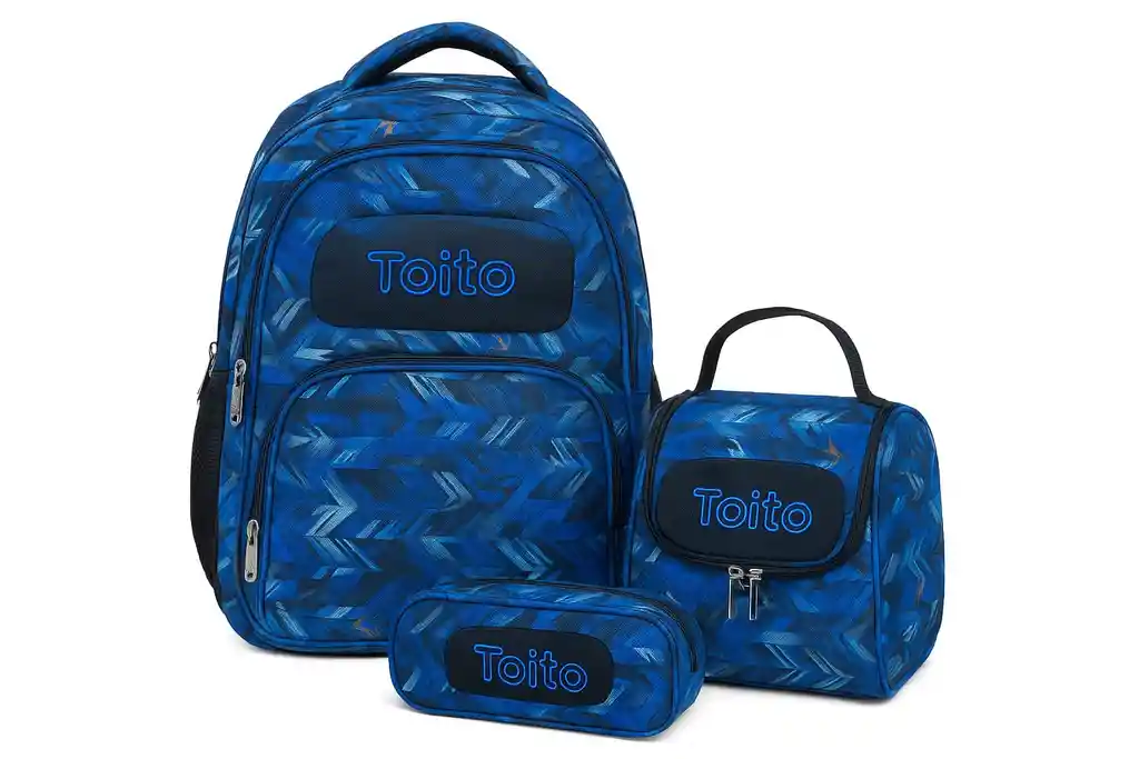 🎒✨ Set Escolar Totto – Estilo, Comodidad y Organización ✨🎒 Luce increíble y mantén todo en orden con este combo Totto que lo tiene todo para el cole o la universidad 📚💙 🔹 Morral amplio y resistente Perfecto para llevar cuadernos, carpetas y hasta el portátil 💻. Sus compartimentos ayudan a mantener todo organizado y fácil de encontrar. Además, tiene bolsillos laterales ideales para botellas o termos 🥤 🔹 Lonchera térmica Mantiene tus alimentos frescos por más tiempo 🥪🍎. Práctica, liviana y con agarradera superior para llevarla cómodamente. 🔹 Cartuchera a juego Compacta pero espaciosa ✏️🖊️. Ideal para lápices, colores y útiles pequeños sin que se pierda nada. 💪 Material resistente y duradero Diseño en tonos azules con estampado moderno que combina con todo 😎