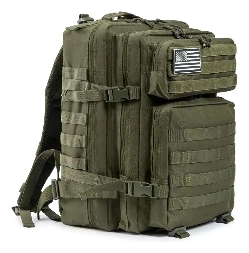Maleta Táctica Militar Morral Senderismo Capacidad 45 Litros Viajes Su diseño con sistema MOLLE permite personalizar y expandir la funcionalidad de la mochila para adaptarse a cualquier tipo de aventura, haciendo que sea una herramienta ideal para actividades tácticas o expediciones largas. DESCRIPCIÓN ZOM Esta Mochila Militar Táctica de 45L está diseñada para ofrecer una solución robusta y versátil para actividades al aire libre, como senderismo, camping o viajes largos. Con una capacidad de 45 litros y múltiples compartimentos, permite llevar y organizar fácilmente todo tu equipo. Entre sus características, destaca el compartimento especializado para portátil, ideal para aquellos que necesitan combinar aventura con trabajo, y un área de velcro para personalización, lo que la hace funcional y adaptable a diferentes necesidades. Fabricada en poliéster resistente y con costuras reforzadas, esta mochila está preparada para soportar condiciones exigentes. Además, su sistema MOLLE permite ampliar su capacidad con pouches adicionales, lo que la convierte en una opción ideal para quienes buscan funcionalidad extra. Las correas acolchadas, el panel trasero ventilado y el cinturón lumbar garantizan comodidad y estabilidad, incluso en largas caminatas o terrenos difíciles. CARACTERÍSTICAS -Capacidad de 45 litros. -Dimensiones 45x33x29 cm. -Múltiples compartimentos. -Compartimento para portátil. -Área de velcro para personalización. -Sistema MOLLE para expansión. -Material de poliéster resistente. -Resistente al agua y al desgaste. -Costuras reforzadas. -Correas acolchadas ajustables. -Panel trasero ventilado. -Cinturón lumbar para estabilidad. QUE INCLUYE LA COMPRA x1 Maleta Táctica